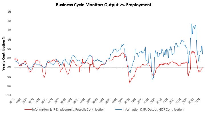 Finally, we examine the output and employment of the information and intellectual property sector: