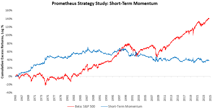 Momentum is a persistent and pervasive phenomenon in markets. However, applying short-term momentum measures without any fundamental overlay can severely damage portfolios. We visualize how this short-term momentum signal described above has performed on a standalone basis.