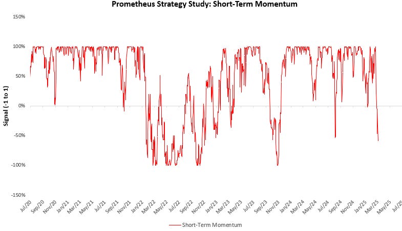 Yet, equity markets have sold off significantly, leading many, directly or indirectly, to turn to short-term momentum measures to reduce their risk or even short stocks. We visualize how a simple measure of short-term momentum had declined significantly in recent weeks to lows not seen since 2023: