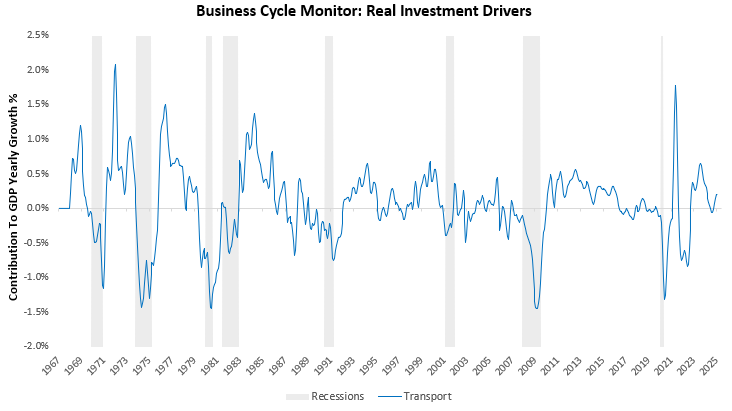 Next, we turn to transportation spending, which includes both household and business investment in transportation: