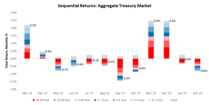 We scan through the Treasury market to assess risk vs reward. So far this year, the aggregate Treasury market has had a slow start to the year after a great Q4 2023. We analyse: