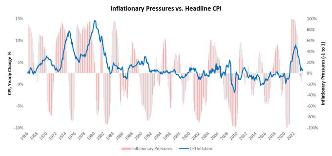 Aggregating these various data points, our leading measures suggest that inflationary pressures are roughly neutral, which suggests a continuation of current inflation trends rather than a breakdown: