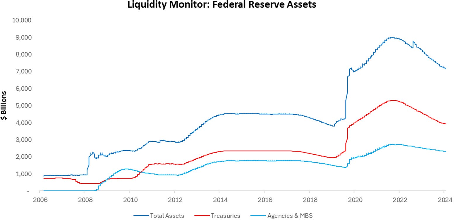 Liquidity is driven by both private and public sources. Currently, public sources face headwinds, whereas private sources remain dominant players in the liquidity ecosystem.