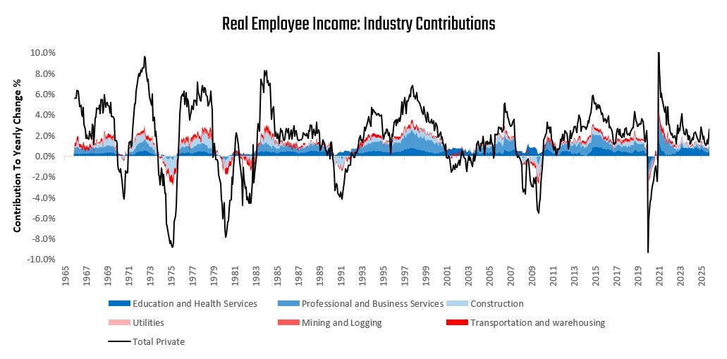 However, despite weakness in labor growth, real wage growth has been strong, supporting strong real incomes: