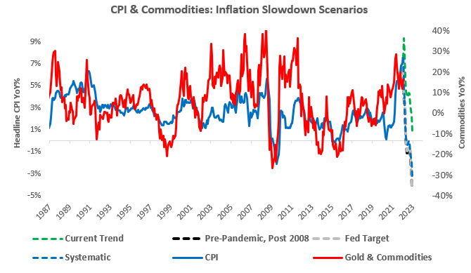 The future is dynamic, and our systems adjust as new information is available. Our bias is to allocate for the existing regime while trying to peek around the corner to what the future may hold. Our systems guided us to stay positive on risk assets through 2021 and have navigated the change in dynamics during 2022 well thus far, keeping us selectively long Commodities and short Equities. Looking to the next few months, our systematic forecasts for economic fundamentals tell us the environment will become even more challenging. We discuss this in the pages that follow.
