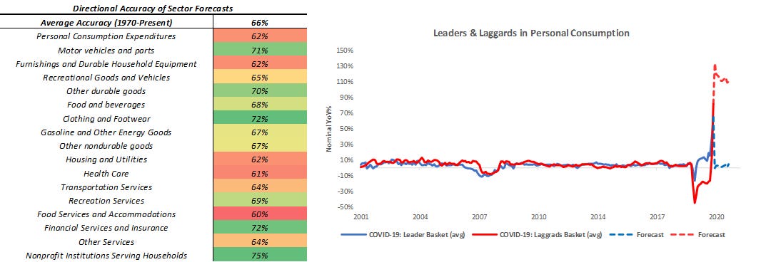 Our systematic forecast is 62% accurate in forecasting the direction of our Spending Index and consistent across all major spending and income items. Hence, we take the considerable signal from our near-cast.