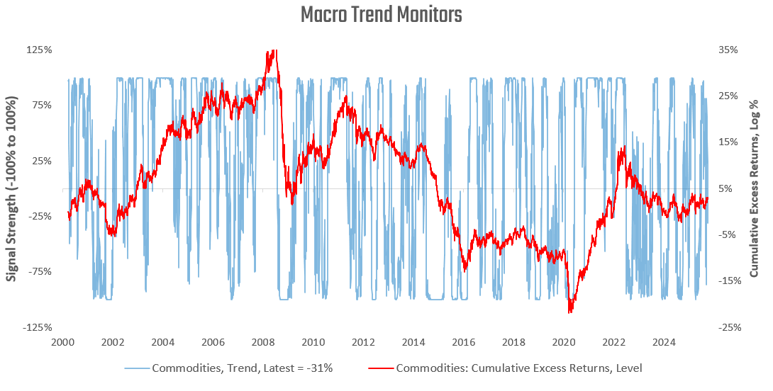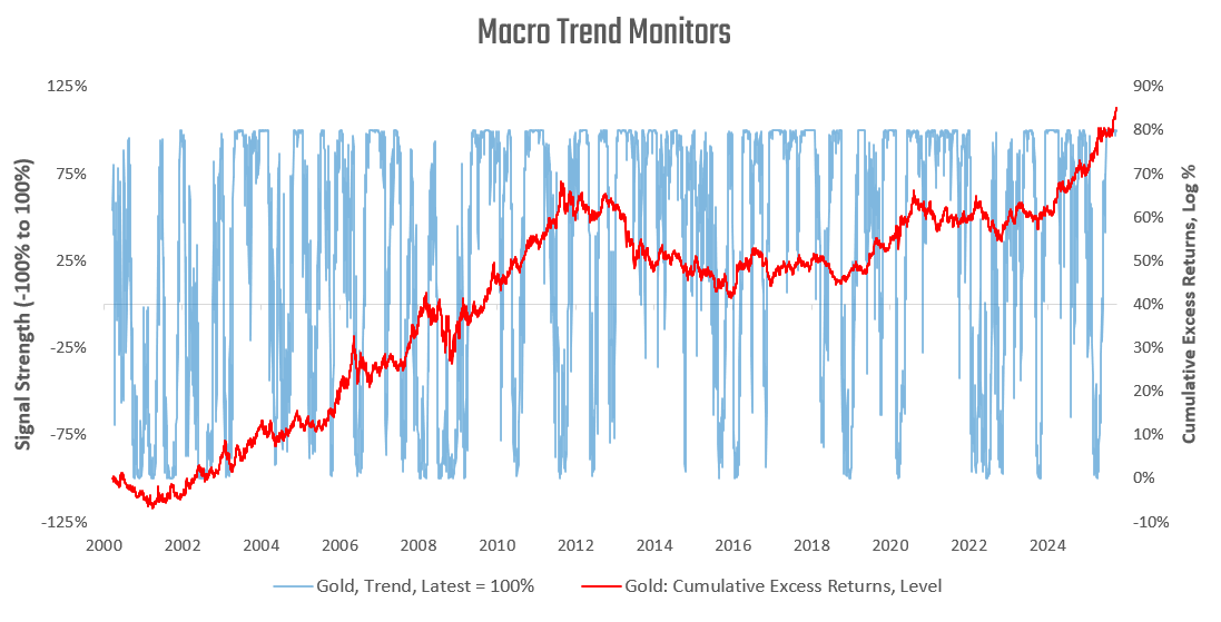 Commodity trends are showing instability. Finally, we examine our macro trend signals for gold: