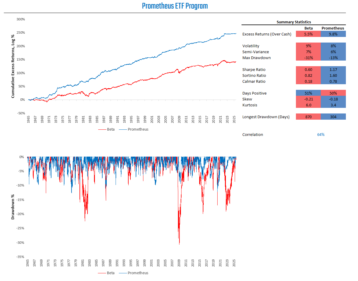 To complement this offering, we recently released our Crisis Protection Program. The Prometheus Crisis Protection program seeks to offer a portfolio diversifier during periods of economic and financial instability by blending active, long-only exposure to Gold, TIPS, and VIX. The program is designed to have minimal turnover, barring crisis periods, and is meant to be a portable solution for both active and passive equity market investors. With an average Sharpe Ratio of 2.0 during days when the equity market declines, we expect the Prometheus Crisis Protection Program to offer a valuable addition to investor portfolios.