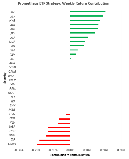 Today, we will provide updates on our ETF Strategy. Our ETF Strategy algorithmically employs our systematic analysis of the US economy and financial markets to create a rules-based, quantitative portfolio. At Prometheus, we focus on understanding the underlying mechanics that drive market environments. We use fundamental economic and high-frequency financial data to understand these macroeconomic environments and codify how to best trade markets. This process creates a robust portfolio solution that attempts to provide high return/risk characteristics and high percentage positive ratios at the portfolio level, regardless of the economic environment. Subscribe below so that you never miss out on our systematic insights into markets and portfolio strategy: