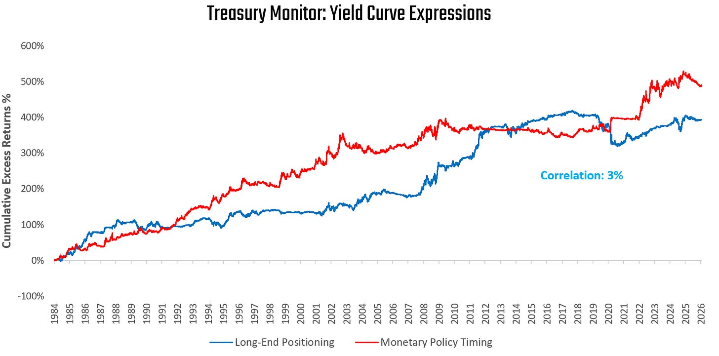 These measures reflect two independent views on US Treasuries: a policy view, which can be expressed in the short end of the treasury curve, and a positioning bet, which can be reflected in the long end of the curve. We show how these views are mechanically and empirically uncorrelated: