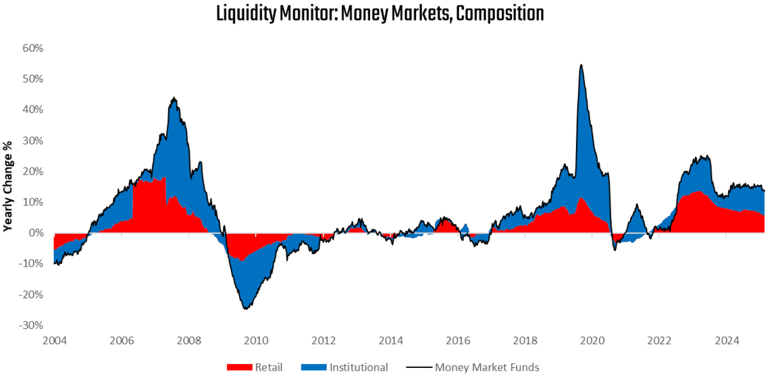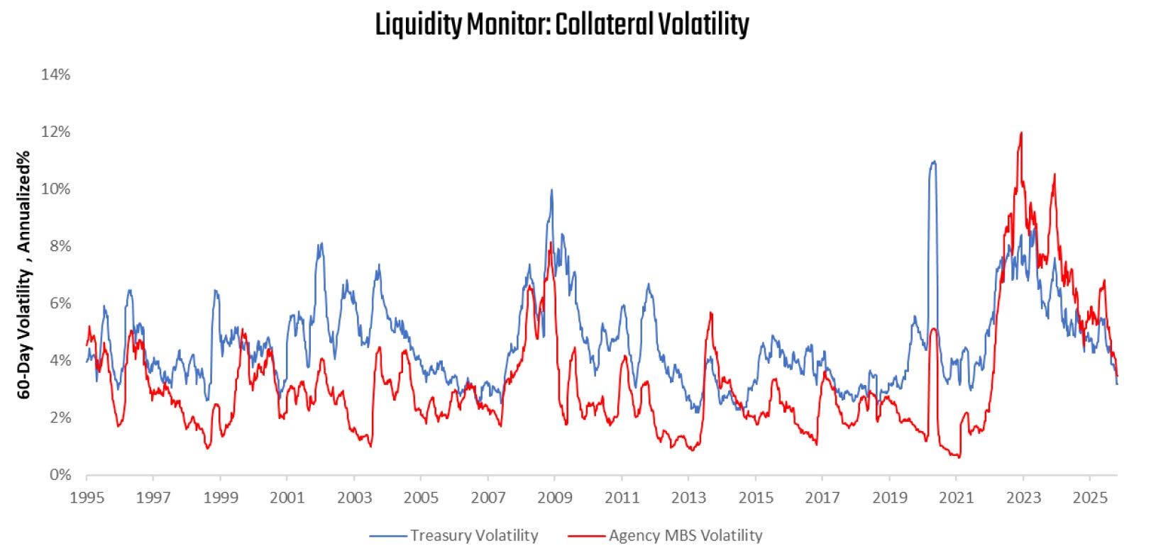 Fixed income volatility has declined meaningfully, improving collateral conditions. Furthermore, the primary source of repo market funding, i.e., money market funds, continues to see strong inflows: