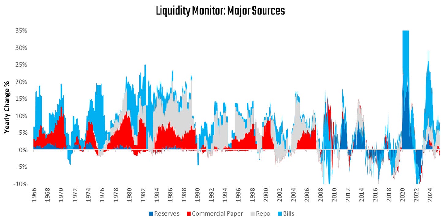 The combination of these dynamics continues to paint a picture of stability in the liquidity ecosystem. This is broad support for asset prices and low volatility.