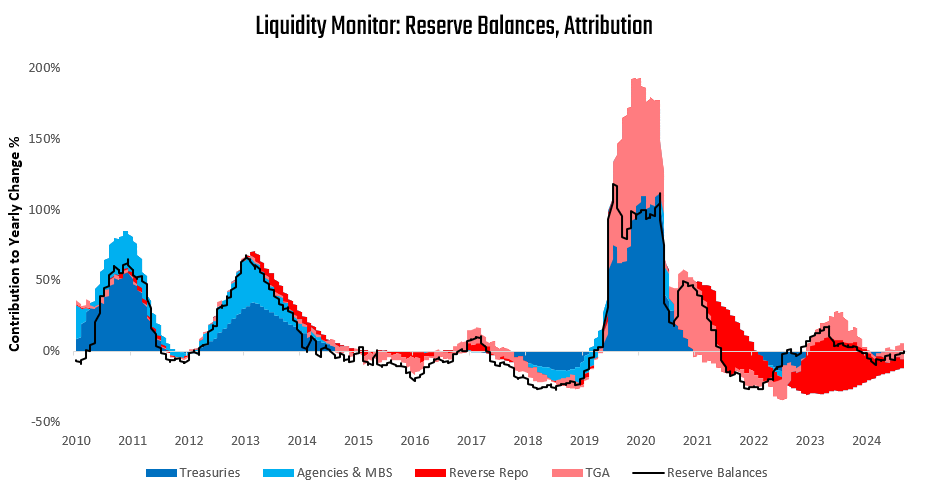 We combine these perspectives to show the drivers of changes in reserve balances over time.