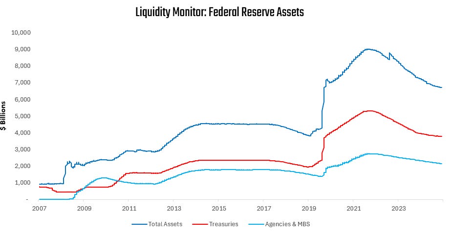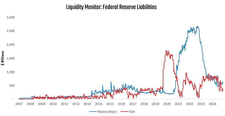Reserve balances at the Fed remain relatively unchanged, and treasury bill issuance has slowed.