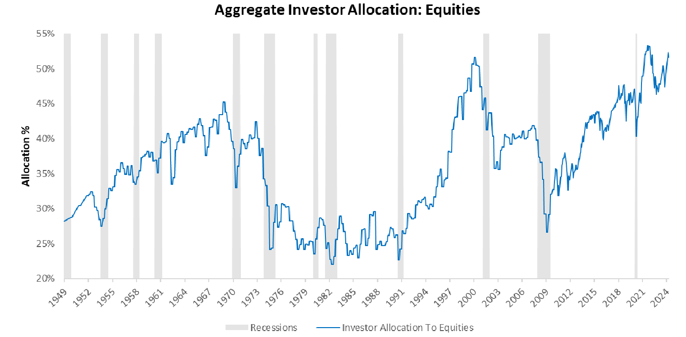 As we get further into historically elevated equity allocation levels, the continued outperformance of equities relative to other assets becomes less probable. However, it is critical to recognize that investor allocations can have extremely large time trends, sometimes spanning decades. Said differently, stretched allocation is not a cause of reallocation. For investors to reduce their equity holdings to prefer other assets, we would need to see a meaningful change in economic activity, which, based on our assessment, remains unlikely. If and when we see a macro regime change, the potential alpha opportunity in equities will likely be large. Until next time.