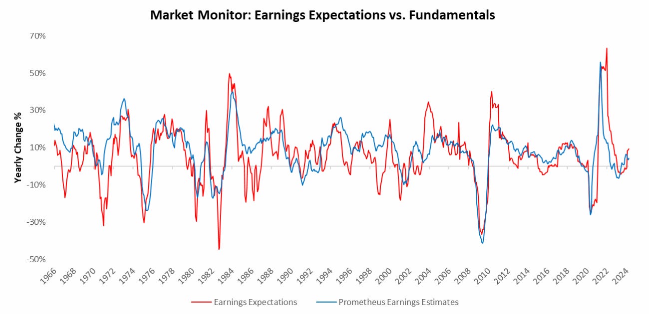 Markets have moved to price in rising earnings expectations in a manner that is modestly ahead of our fundamental estimates.