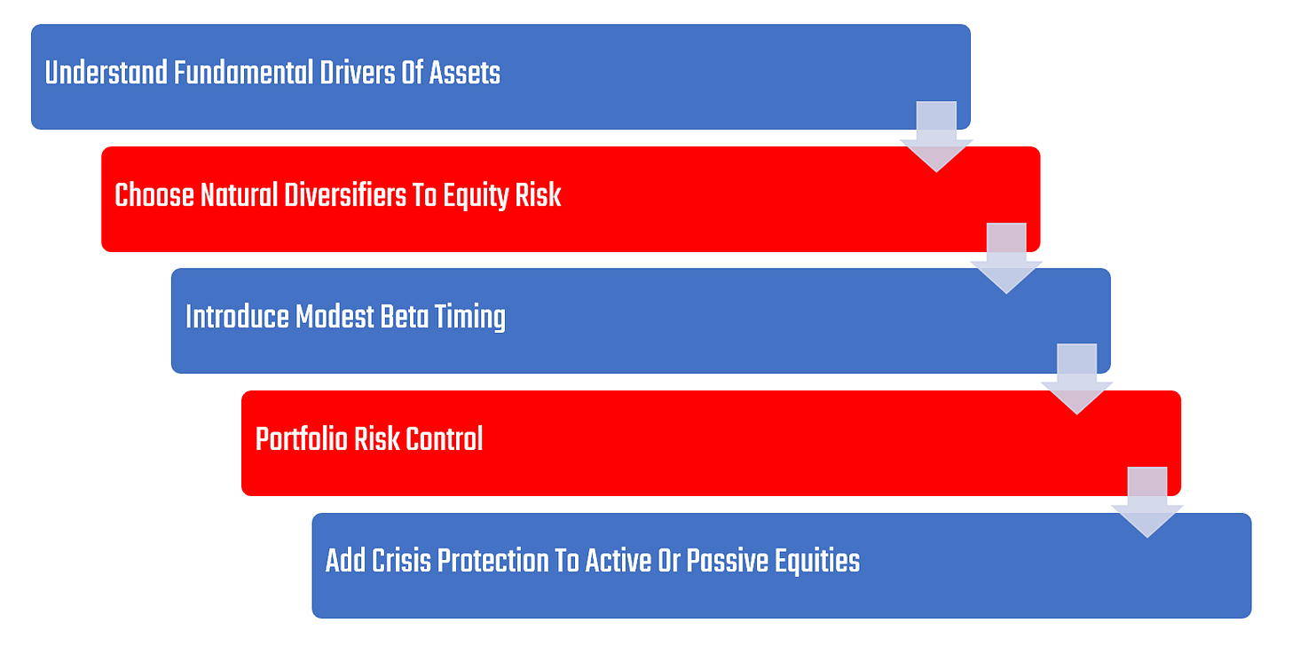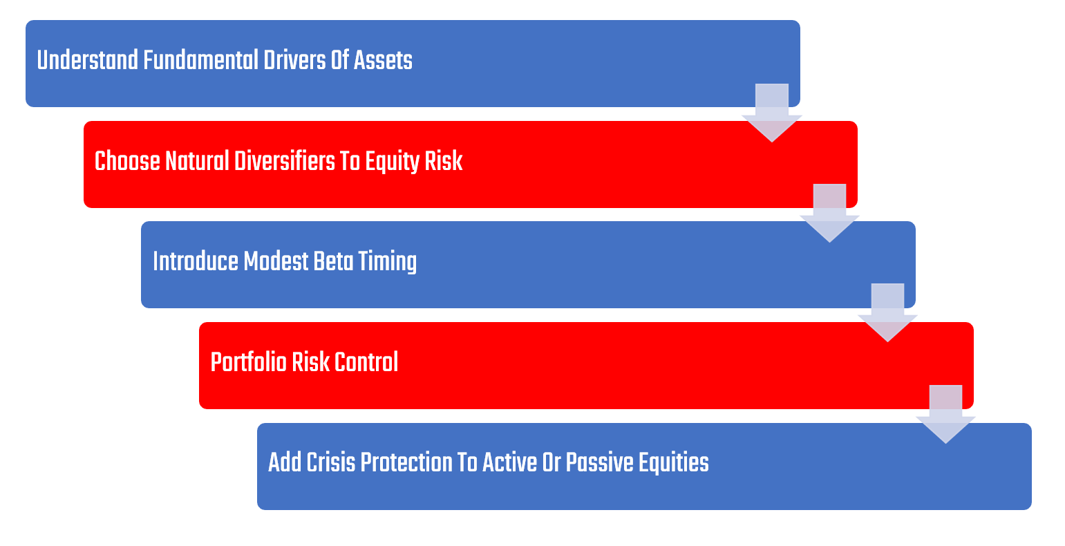 Our Crisis Protection Program leans primarily on diversification to create a portfolio that is biased to outperform during equity market downturns, creating an extremely strong complement to both active and passive equity exposure. Below, we outline the steps to creating this portfolio: