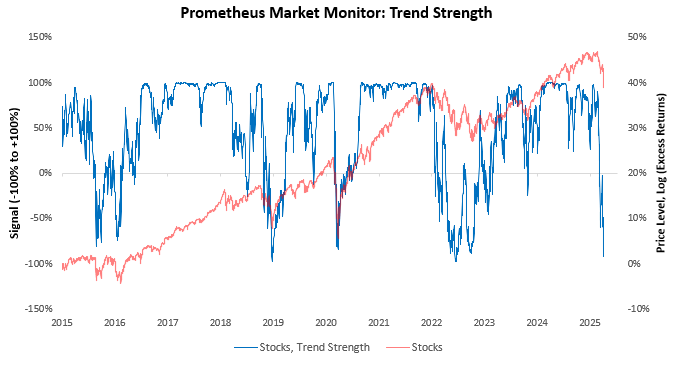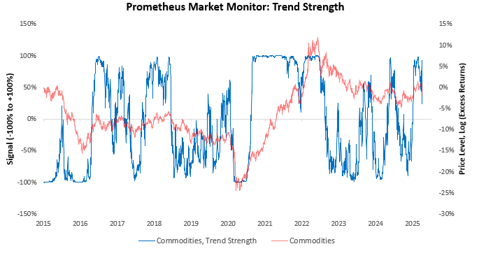 Our Macro Regime Probabilites account for changes in market prices and fundamentals. We now zoom in on some of the market measures we track. Particularly, we focus on measures of trend, as they help us contextualize the current backdrop and signal the need for risk management.