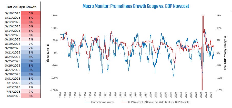 We begin with our Growth Gauge. Our Growth Gauge aggregates data across hundreds of economic growth variables to create a timely read of forward-looking macro pressures on GDP growth. We visualize this gauge below: