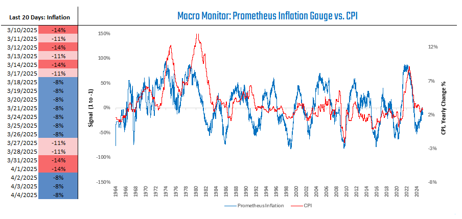 Next, we turn to our Inflation Gauge. Our Inflation Gauge, much like our Growth Gauge, aggregates data across hundreds of economic growth variables to create a timely read of forward-looking macro pressures on future inflation. We visualize this below: