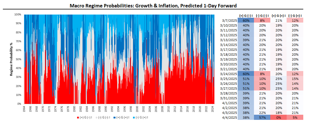 The distribution of macroeconomic regime probabilities has moved significantly, reflecting the recent shifts in cross-asset macro market pricing.