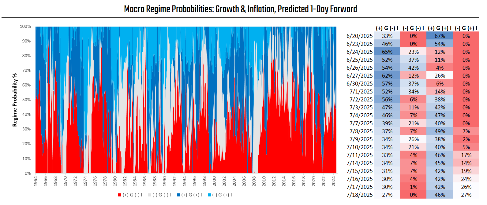 The distribution of forward-looking macroeconomic regime probabilities remains dominated by rising growth.