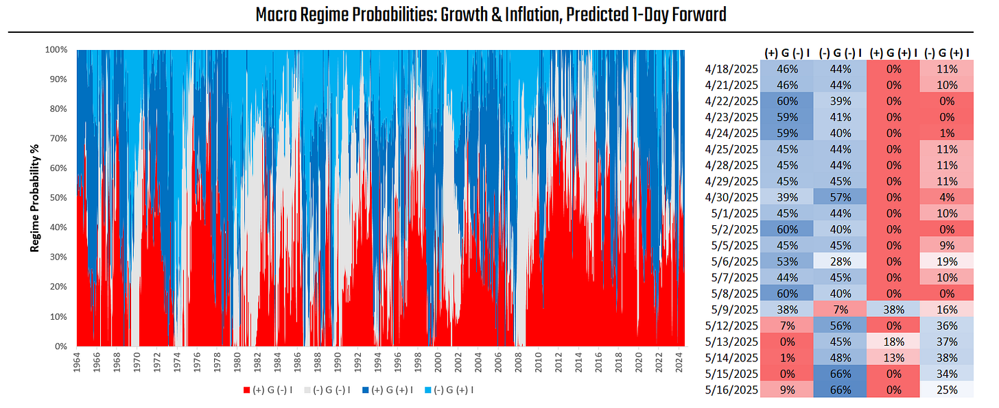 The distribution of forward-looking macroeconomic regime probabilities is now dominated by falling growth.