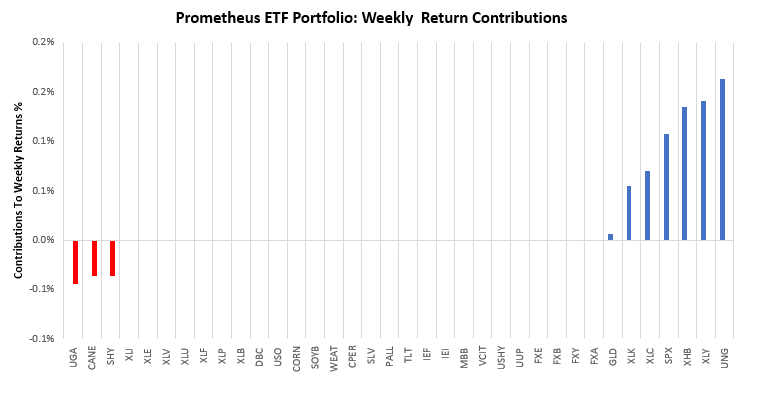 Over the last week, the Prometheus ETF Portfolio was up by 0.6%. Below, we show the contributions to this portfolio performance across securities: