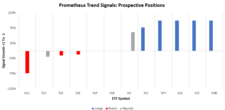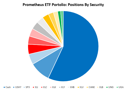 Turning to next week, our systems are looking to position the Prometheus ETF Portfolio, as shown below. The portfolio contains 13 positions heading into next week. We show these below: