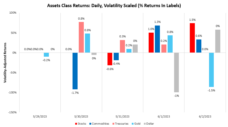 These measures suggest long positions in stocks, flat 10-year Treasuries, short commodities, and long gold.