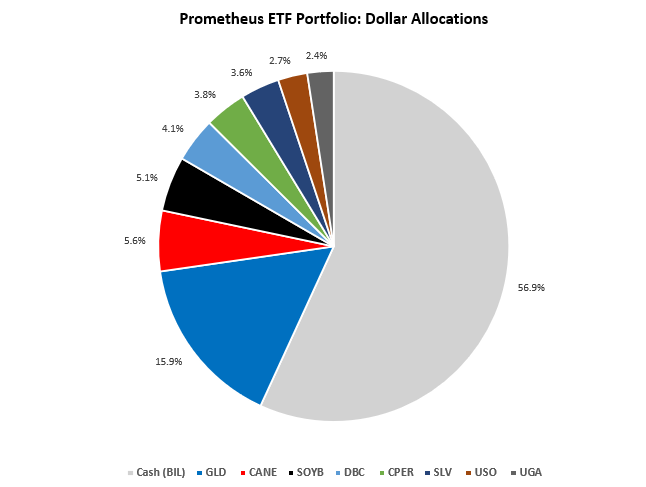 Regarding our fixed-income positions, our systems have removed the exposure as part of their risk mitigation process. Below, we show our positioning for the Prometheus ETF Portfolio next week: