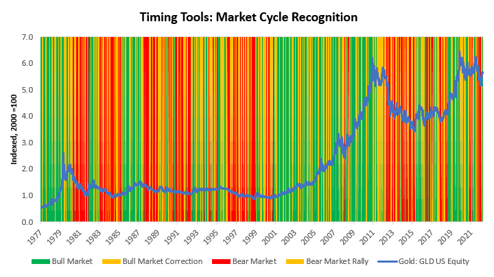 GLD: Gold has transitioned into a Bear Market from a Bear Market Rally. Nonetheless, current market pricing shows potential for a reversal, creating beta capture opportunities