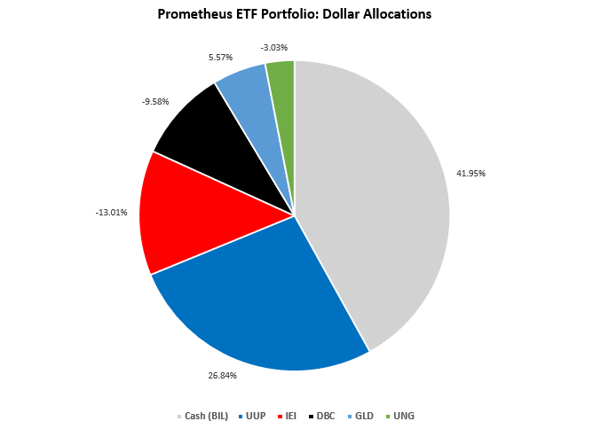 Positions: Cash (BIL): 41.95% UUP : 26.84% IEI : -13.01% DBC : -9.58% GLD : 5.57% UNG : -3.03%