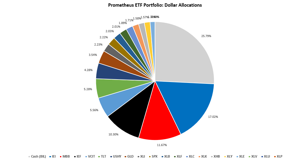 Positions: BIL: 25.79% IEI : 17.02% MBB : 11.67% IEF : 10.3% VCIT: 5.56% TLT : 5.28% USHY: 4.28% GLD : 3.54% XLI : 2.23% SPX : 2.22% XLB : 2.03% XLF : 2.01% XLC : 1.89% XLK : 1.71% XHB : 1.58% XLY : 1.57% XLE : 1.32%
