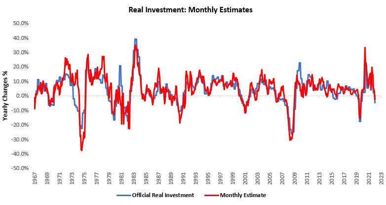 This drag is no surprise to us, as our monthly estimates of total investment have telegraphed these pressures: