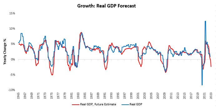 The key question for the profit cycle, which will drive the GDP cycle— is now whether real consumption can continue these contractions. A weakening in consumption will cause a significant hit to headline GDP numbers and dampen corporate profit, pushing for layoffs to begin in aggregate. This dynamic will be the impact that transitions real GDP into a consistent contraction. Our estimates show a contraction in real GDP on the cards in the near future: