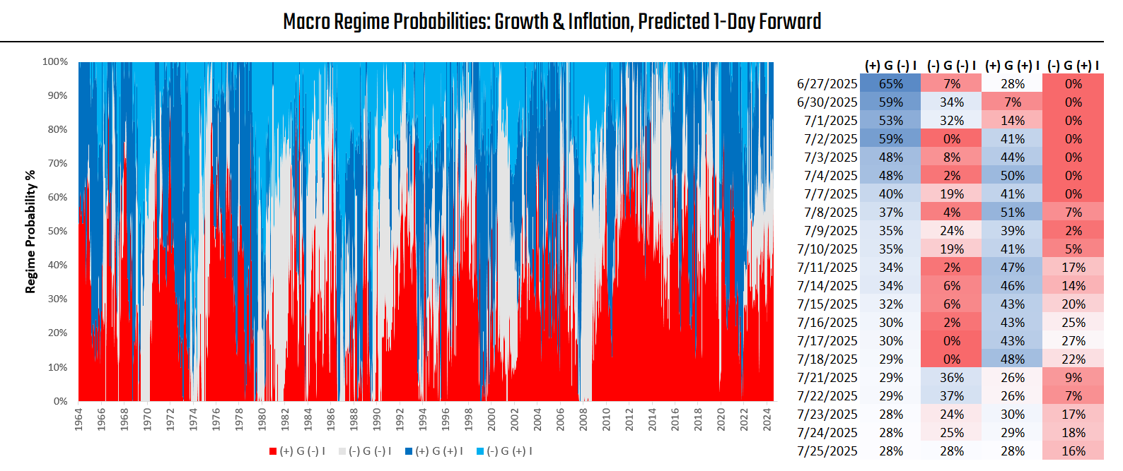 The distribution of forward-looking macroeconomic regime probabilities has flattened.