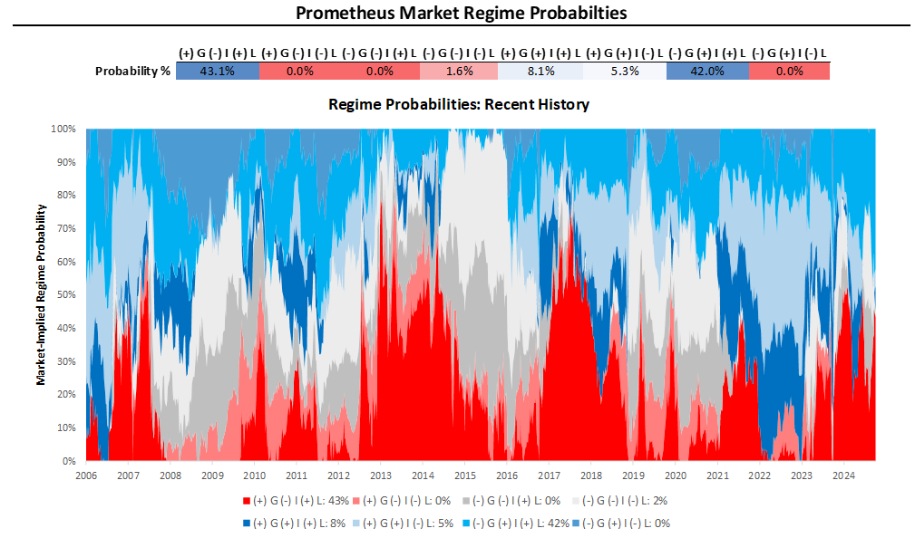 Market Monitor: Over the last week, markets moved to price incrementally higher odds of falling nominal growth, however, bonds remained under pressure as economic data surprised to the upside significantly this week. Commodities reversed their gains this week, and equities begun to show some weakness. Bond markets moved counter to these regime dynamics, suggesting potential moves ahead of us.