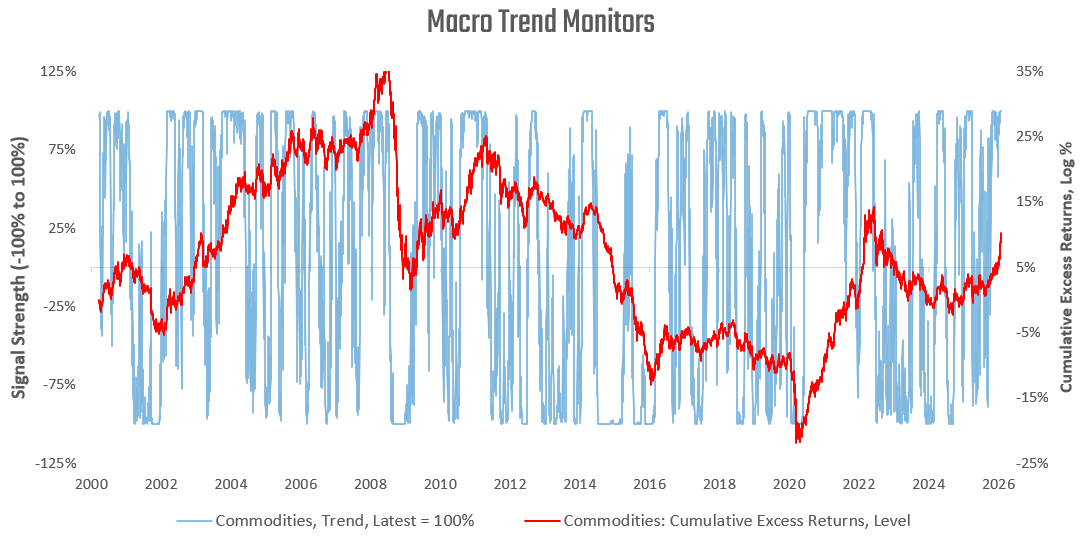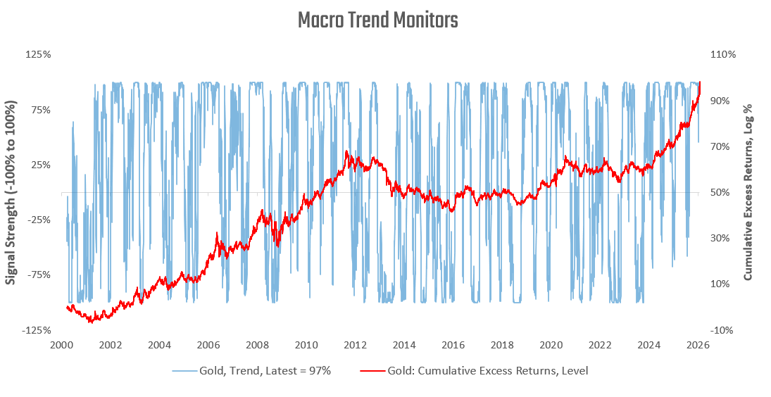 Commodity trends remain strong. Finally, we examine our macro trend signals for gold: