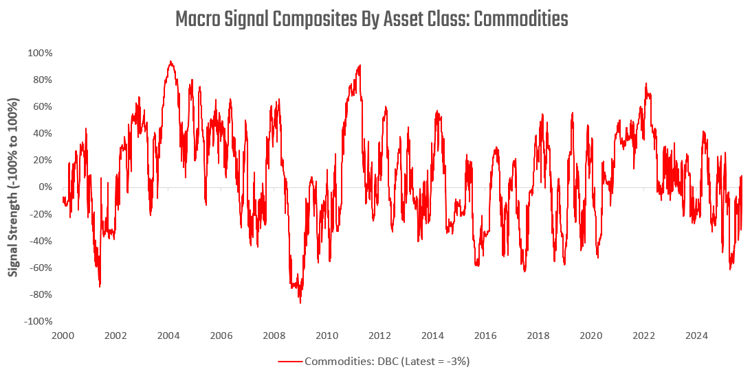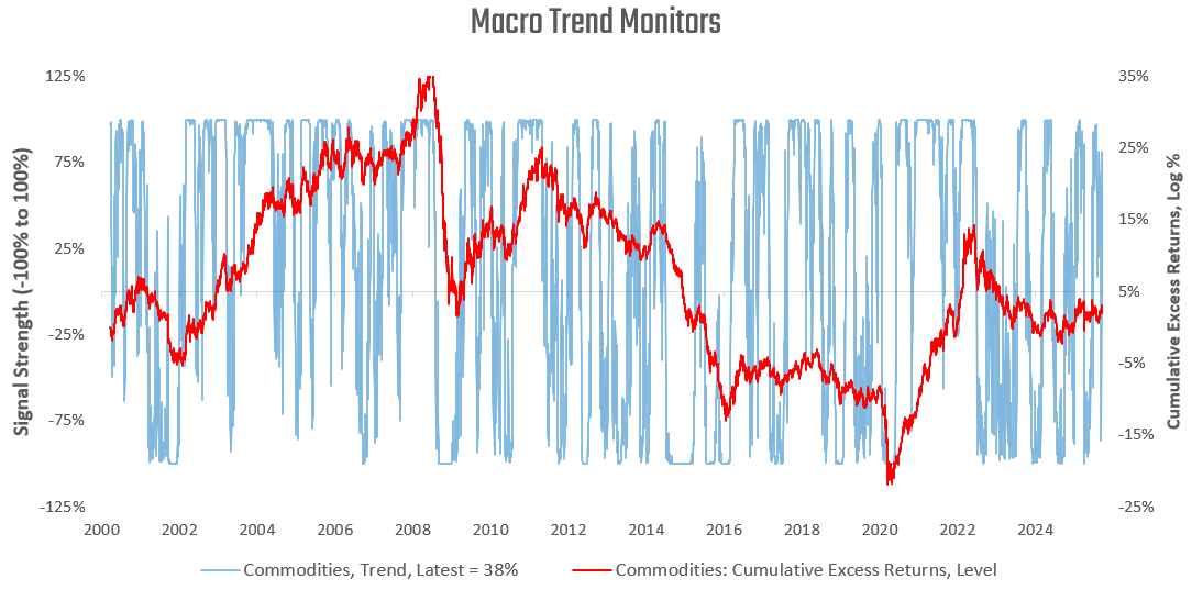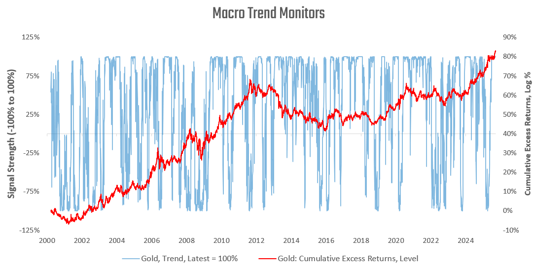 Commodity trends show moderate strength. Finally, we examine our macro trend signals for gold:
