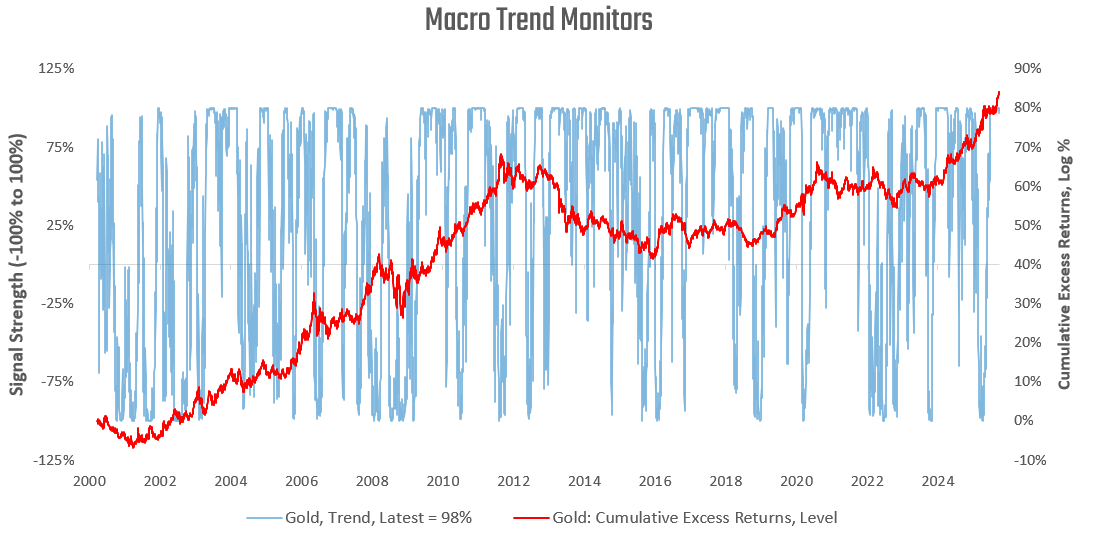 Commodity trends show modest strength. Finally, we examine our macro trend signals for gold:
