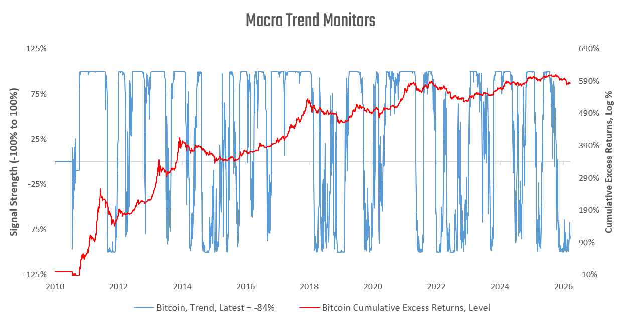 Gold trends have deteriorated meaningfully. Finally, we examine our trend signals for Bitcoin: