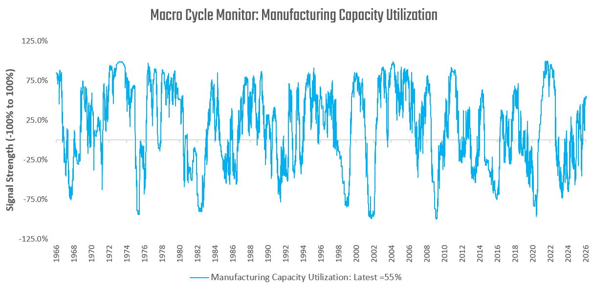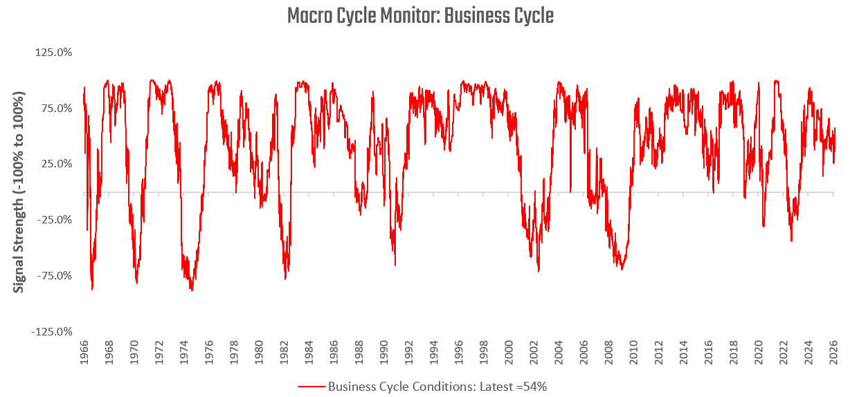 Our systems aggregate a wide range of fundamental economic data to produce timely, proprietary estimates of the current stages of the macro cycle. We share some of these gauges, starting with our signals for business cycle conditions: