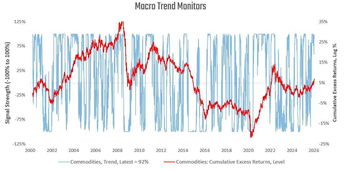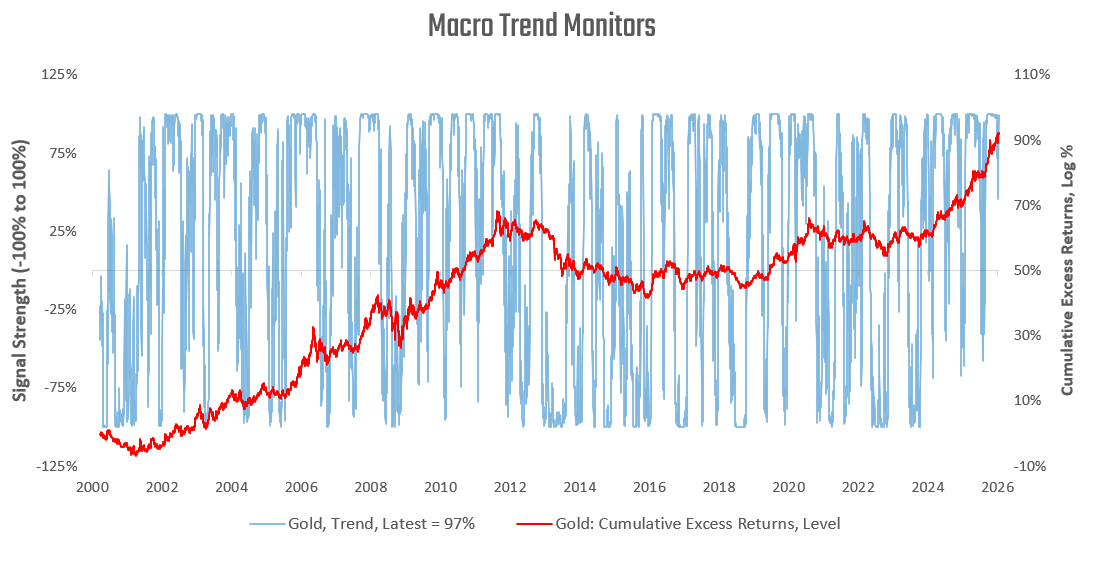 Commodity trends have gained considerable strength. Finally, we examine our macro trend signals for gold: