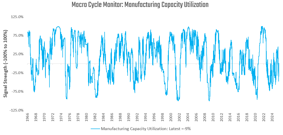 Our latest readings show that manufacturing capacity utilization is now neutral.
