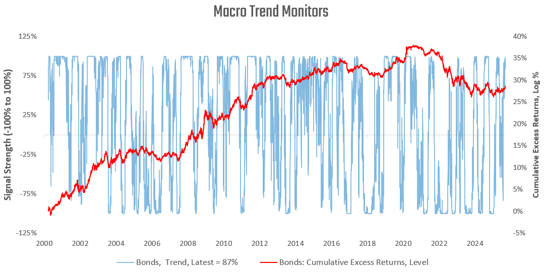 Equities continue to show extremely strong trend signals. Next, we turn to bond market trends:
