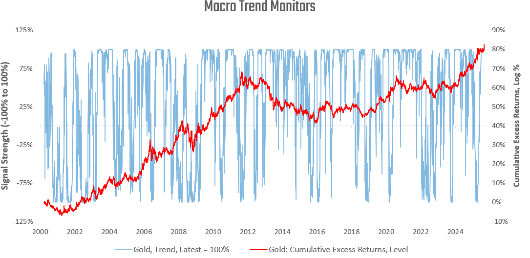 Commodity trends have turned decidedly negative. Finally, we examine our macro trend signals for gold: