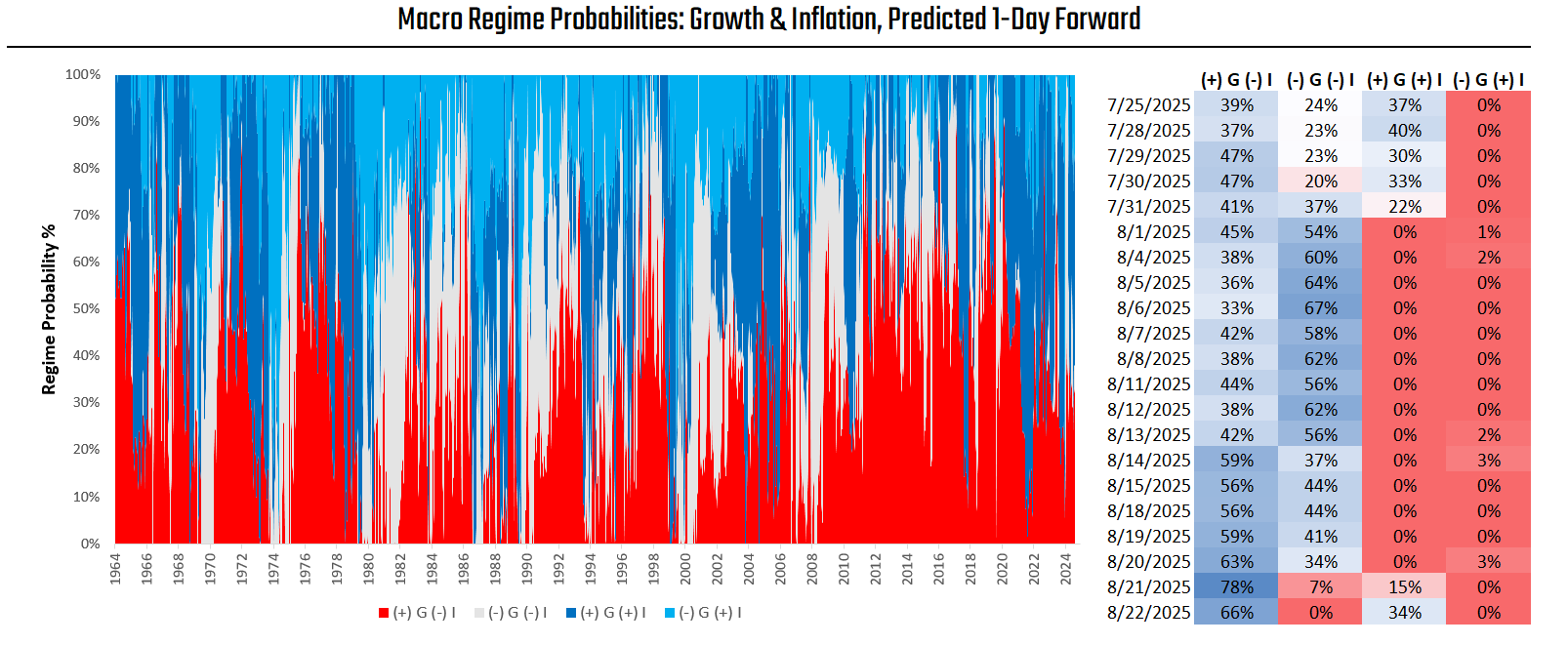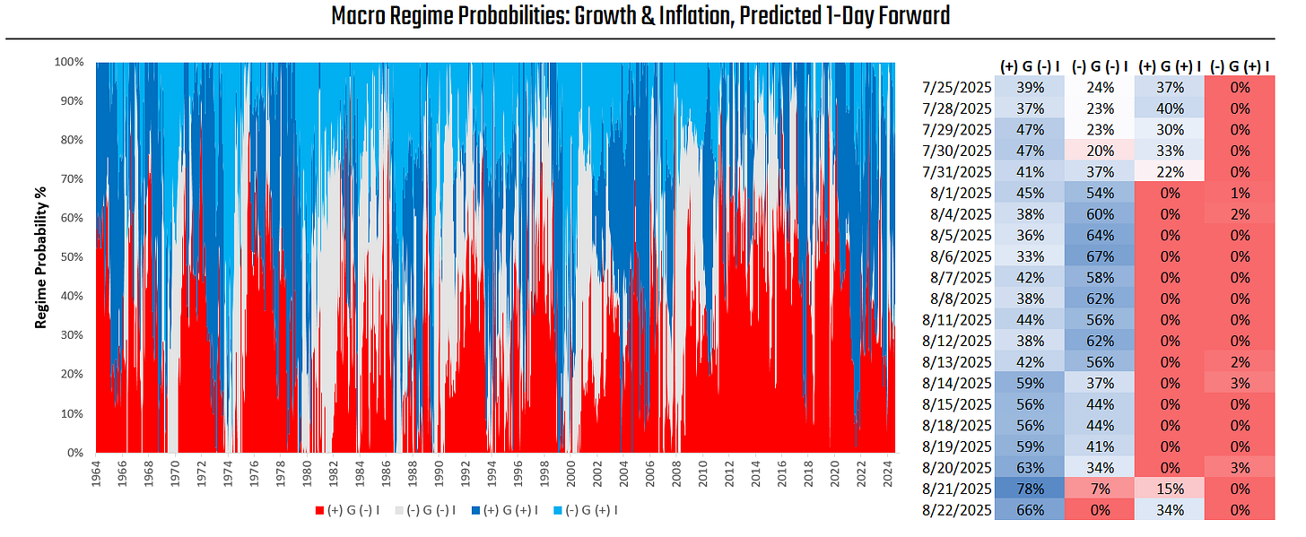 Our forward-looking macro regime probabilities continue to show a dominance of growth outcomes.
