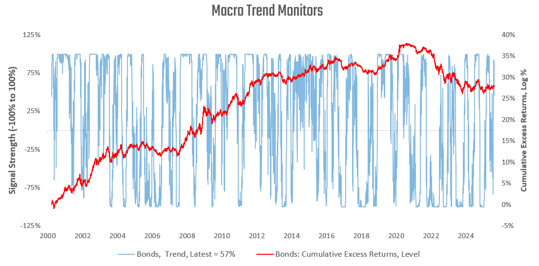 Equities continue to show extremely strong trend signals. Next, we turn to bond market trends: