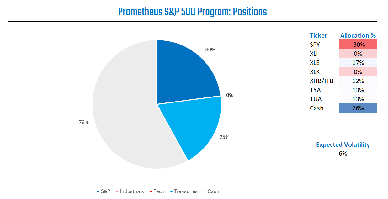 The Prometheus S&P 500 Program aims to outperform the S&P 500 over a full investment cycle. The program will strive to achieve this objective by leveraging a combination of Sector Selection, Beta Timing, Active Overlays, and Dynamic Risk Control. Our S&P 500 Program can be integrated with our Crisis Protection Program, which seeks to offer a portfolio diversifier during periods of economic and financial instability by blending active, long-only exposure to Gold, TIPS, and VIX.